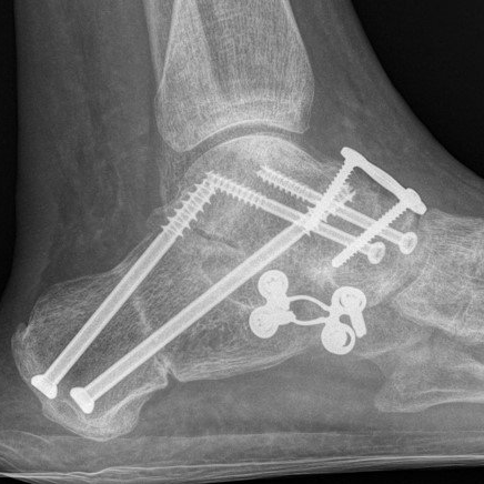 This surgical procedure involves fusing one or more of the midfoot and hindfoot joints. A common combination is called a hindfoot "triple fusion".